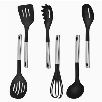 Keukengerei Roestvrijstalen Nylon Keukengerei Set Van 6 Vaatwasser Kluis Inclusief Draaier, Spatel, Schuimspaan
