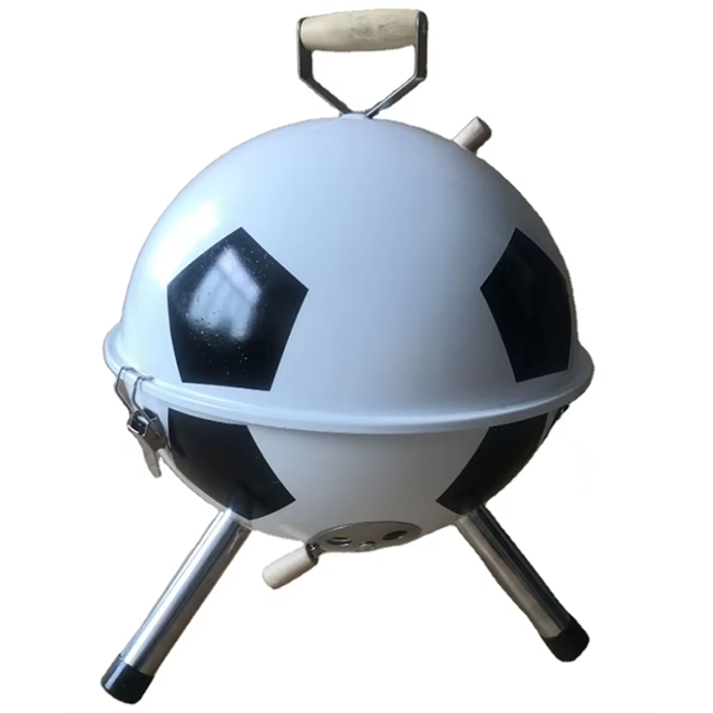 Custom 12 Inch Draagbare Mini Voetbal Vorm Houtskoolgrill Outdoor Bbq Ronde Grill