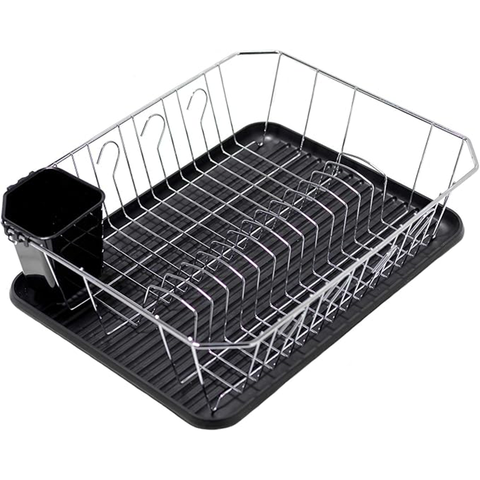 Estante de secado de platos grande con bandeja de goteo y cubertería