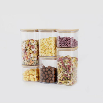 Recipiente Retangular Plástico Ecológico De Armazenamento De Alimentos À Prova de Vazamento Hermético Tampa De Bambu Congelador Seguro para Café Chá Doces Açúcar